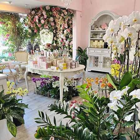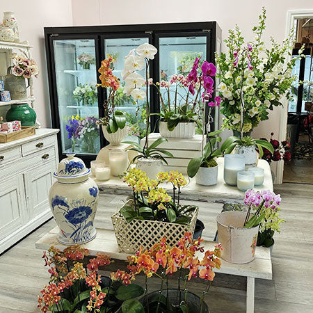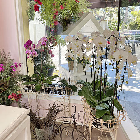 Our Orange County location is a floral studio where our designers work their magic. Currently, it's not available for in-store shopping but offers the same premium selection of orchids, flowers, plants, and gifts online for same-day delivery for our OC clients.
